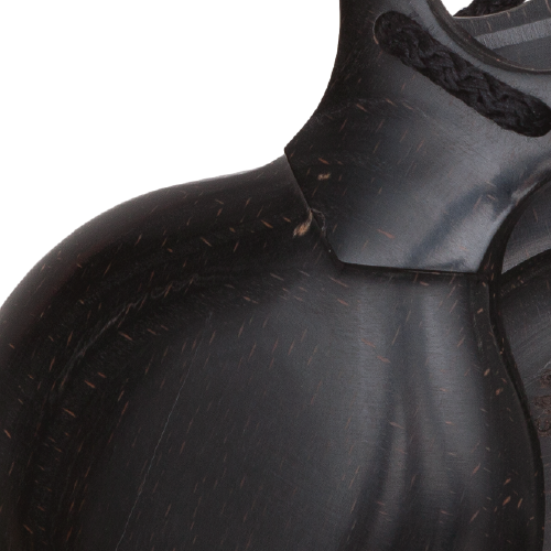 La superficie de las castañuelas está decorada con incrustaciones o tallados detallados, que pueden variar en diseño y estilo. Estas decoraciones añaden belleza estética al instrumento y reflejan la artesanía tradicional asociada con su fabricación.