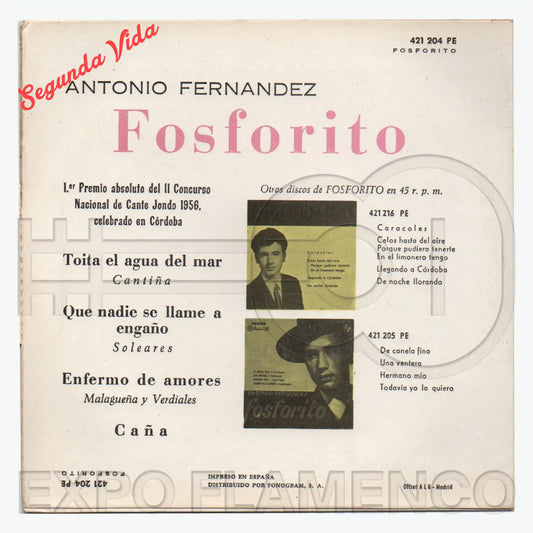Fosforito - 1º Premio II Concurso Nal de Cante Jondo 1956Precio habitual € 7,00Precio habitualPrecio unitario / por€ 10,00Precio de oferta € 7,00Oferta
