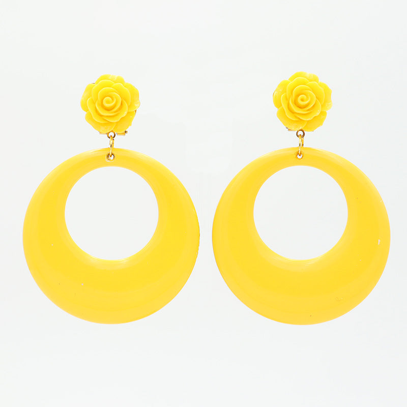 Plain hoop earrings with carved flower - Various colors