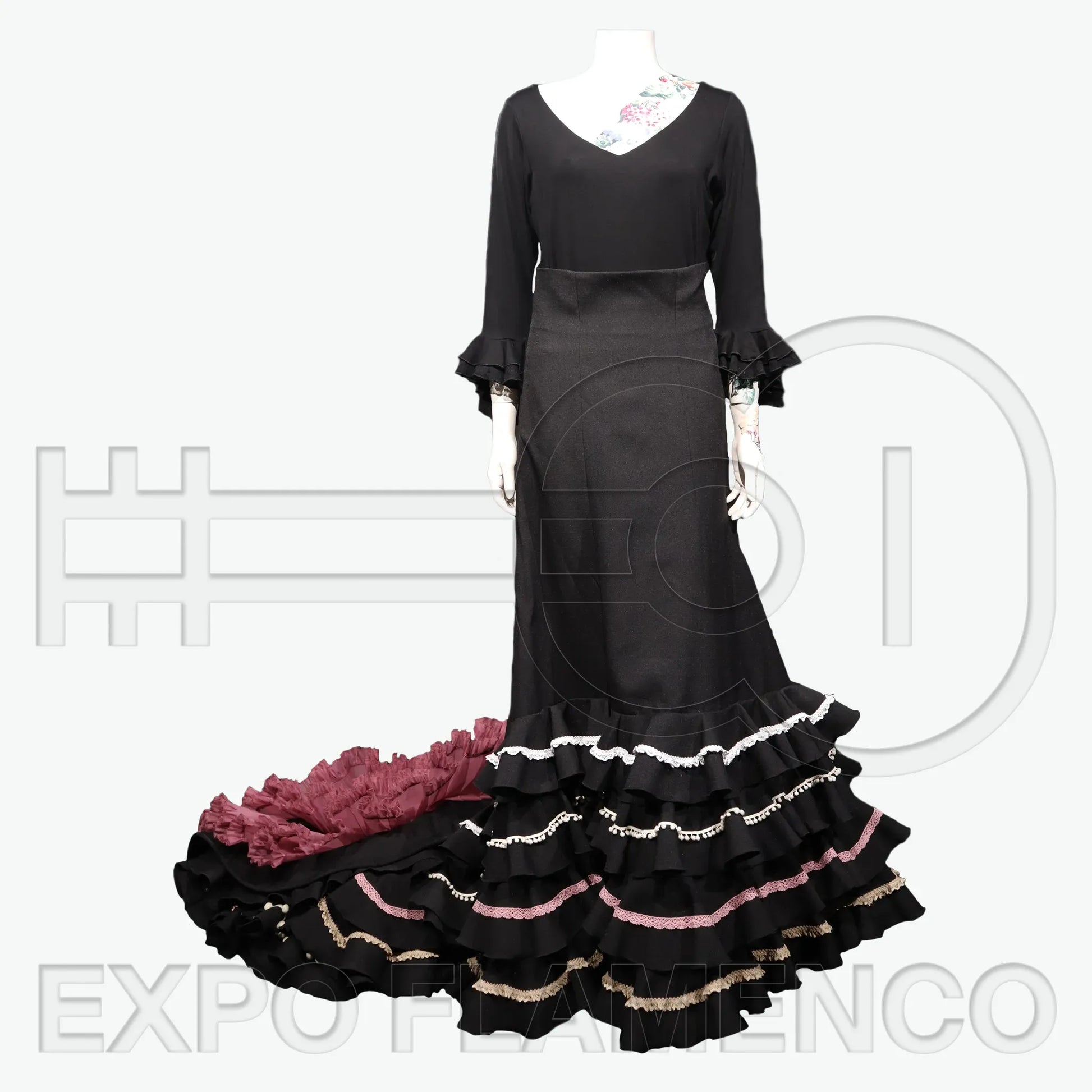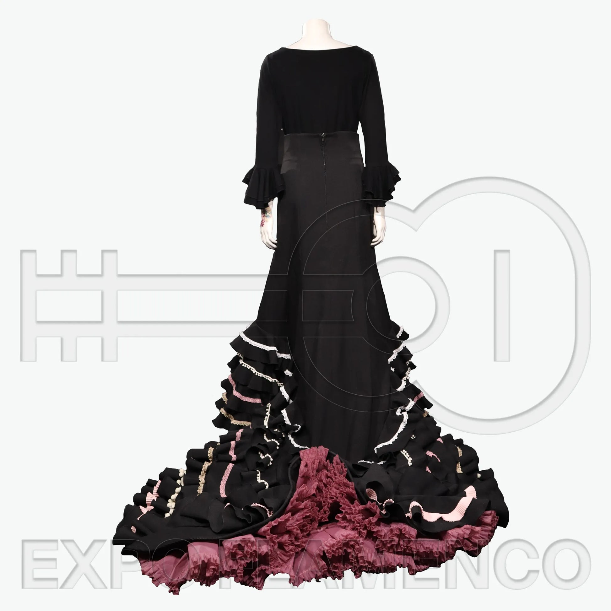 Bata de cola profesional de talle alto, 4 vol. simples. Diseño "GOYESCA" con cancán maquillaje.