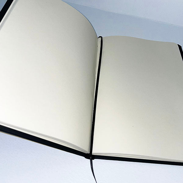 Bloc de notas con tapas de tacto suave, acabado en polipiel y disponible en varios colores. De 100 hojas lisas, con elástico de sujeción y marcapáginas de tela a juego. Tamaño A5.