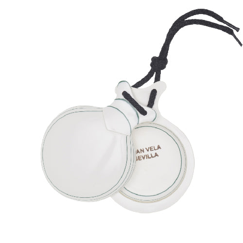 La castañuela capricho se corresponde con nuestra más alta gama de castañuelas. Su fabricación es 100% hecha a mano, a base de papel prensado, grabadas con nuestro sello JUAN VELA SEVILLA. Esta castañuela se caracteriza por ser la más ligera de todas las gamas. Gracias a su gran caja de resonancia obtenemos un sonido grave con una gran calidad acústica. Su forma más redondeada permite una mejor adaptación a la mano. En conclusión: casi se tocan solas.