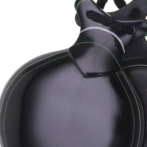 Se puede elegir entre caja normal que proporcionará un sonido grave y entre caja doble que será aún más grave. Con respecto a la estética de la castañuela también puedes, si lo deseas, retirar el pico de la parte superior de la caja de resonancia. Modificación que no afecta al sonido de las castañuelas. Otro aspecto a destacar es que en el precio se incluye nuestra funda especial fabricada a mano con polipiel, borreguito y acabados metálicos. Solo tienes que elegir uno de los diez colores disponibles.