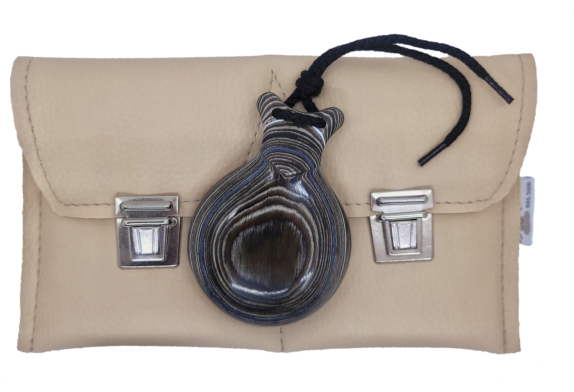 Puedes elegir entre diferentes tonos: madera veteada gris, madera veteada marrón y madera veteada roja. También si lo prefieres puedes eliminar el pico de la parte superior de la caja de resonancia, esta modificación solo afecta a la estética de la castañuela. Finalmente puedes seleccionar el color de los cordones y de la funda que las castañuelas profesionales traen consigo. La funda también se realiza de manera artesanal con polipiel en el exterior, borreguito en el interior y cierres metálicos.