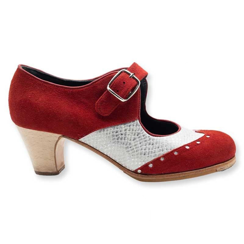 Calzado Flamenco - Combinado hebilla, ante rojo y fantasía