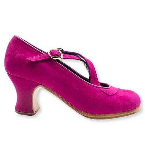 Calzado Flamenco - Correas cruzadas, ante 12 fucsia
