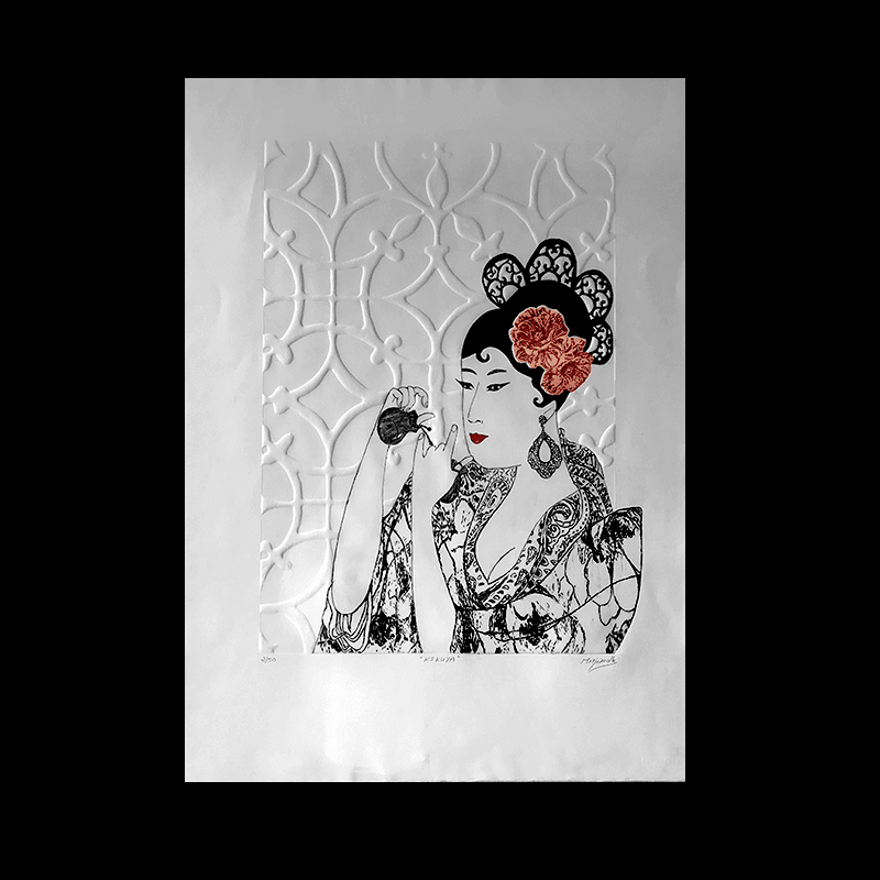 Soporte: HAHNEMUEHLE 300 gr. / m2. Tamaño: 70x50 cms.