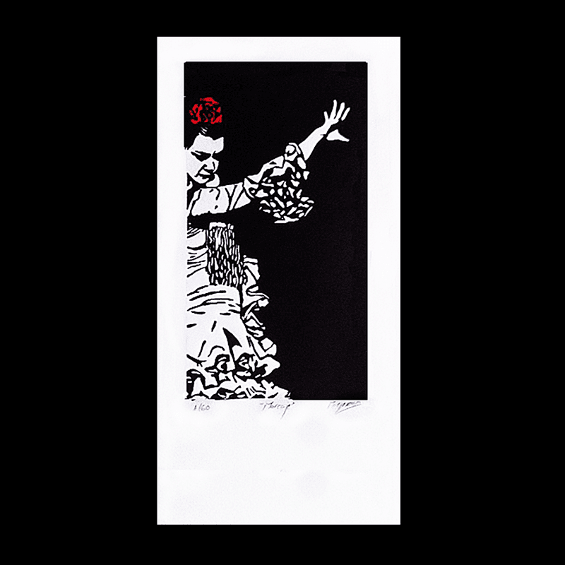 Técnica de estampación: Linograbado. Chine collé
