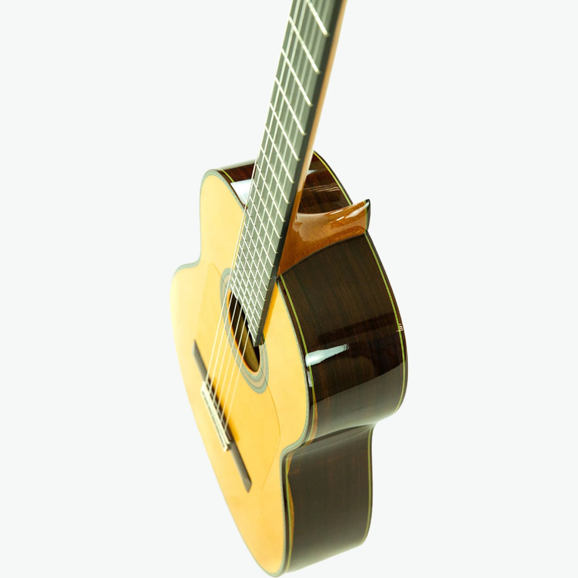 Guitarra hecha a mano en su totalidad. Maderas de primera calidad. Guitarra de concierto Exclusiva con maderas únicas sistema armónico exclusivo Barnices nitro o gomalacaNuestras guitarras se pueden personalizar con distintas combinaciones de materiales, acabados, tapas armónicas… de manera de que puedes tener tu guitarra “a la carta”. Ponte en contacto con nosotros a través del formulario de contacto y te daremos más información sobre las distintas opciones de personalización que puedas necesitar.