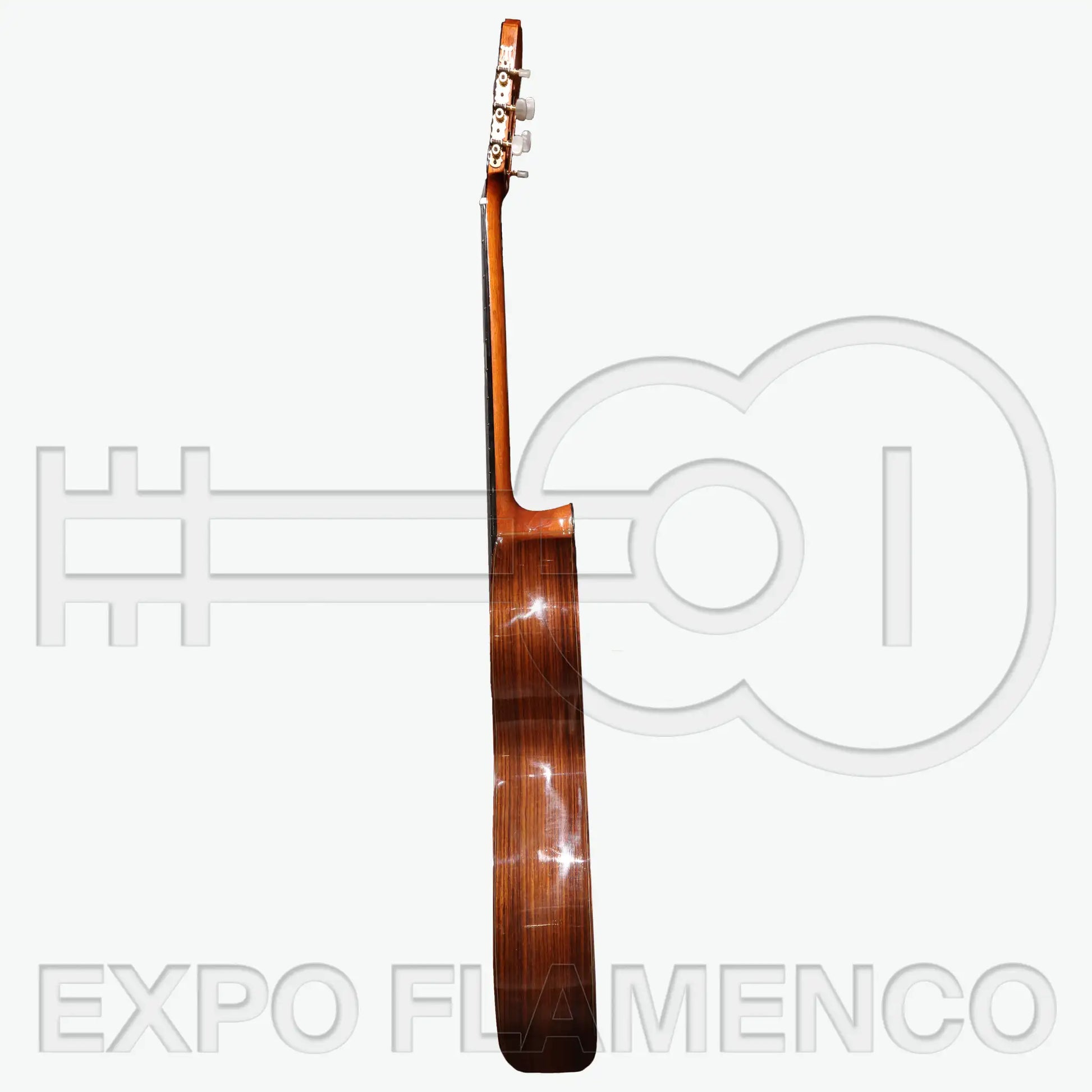 Esta guitarra flamenca fue construida por el guitarrero Rafael Romero de Cádiz en el año 1994. Sus guitarras han sido utilizadas por guitarristas de la talla de Moraito Chico, Manuel Parrilla, Juan Parrilla… Además de constructor es un reconocido guitarrista y ha acompañado a cantaores como Chano Lobato, Rancapino, Curro de la Malena… teniendo así una visión más amplia de los gustos y necesidades que el guitarrista flamenco busca en una guitarra flamenca.