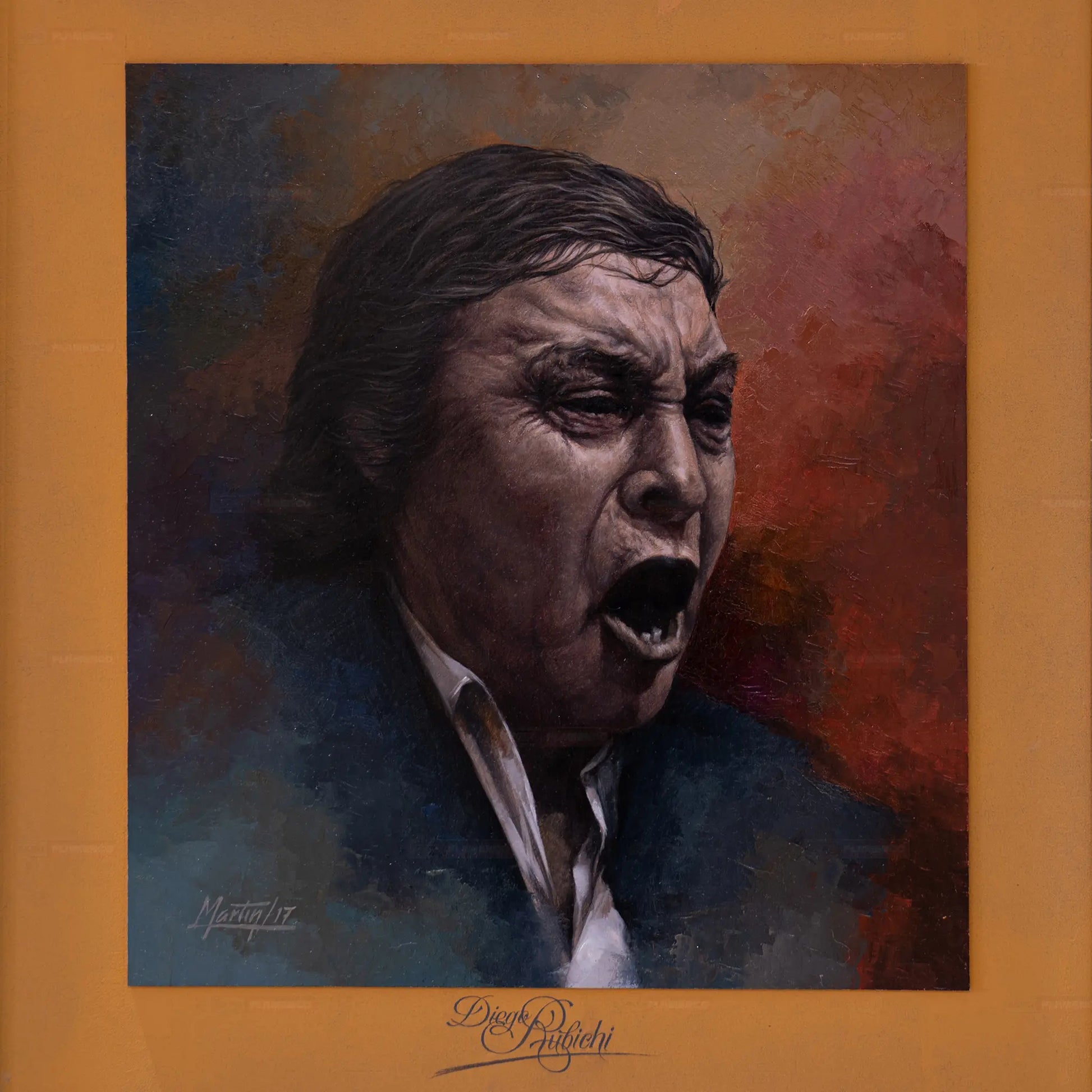 Martín Merino Román, pintor artístico, nace en 1945 en Jerez de la Frontera (Cádiz). Casi un niño, se forma en la Escuela de Artes y Oficios de su tierra. Pertenece a una generación que se formó en la llamada industria auxiliar del vino que precisaba de las artes gráficas. Allí adquirió un gran oficio como dibujante, cualidad que lo llevó a trabajar en empresas de este ramo como la exigente Jerez Industrial. Un gran cimiento para acometer, a cierta edad, su paso a la pintura. Como advierte el crítico de arte Bernardo Palomo: 'su obra parte de ese determinante dibujo que estructura cualquier buen proyecto. Por eso, sus retratos son obras muy bien compuestas, relatoras de una realidad que el autor domina para llevarla a cabo con justa precisión'. Esta galería dedicada a figuras del arte jondo 'Flamencos de mi tierra' es una clara muestra de la calidad y destreza que atesora su autor.