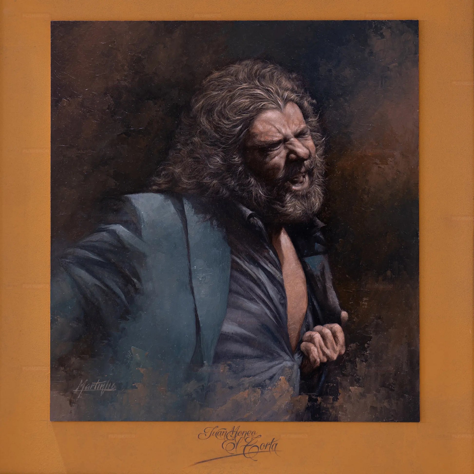 Martín Merino Román, pintor artístico, nace en 1945 en Jerez de la Frontera (Cádiz). Casi un niño, se forma en la Escuela de Artes y Oficios de su tierra. Pertenece a una generación que se formó en la llamada industria auxiliar del vino que precisaba de las artes gráficas. Allí adquirió un gran oficio como dibujante, cualidad que lo llevó a trabajar en empresas de este ramo como la exigente Jerez Industrial. Un gran cimiento para acometer, a cierta edad, su paso a la pintura. Como advierte el crítico de arte Bernardo Palomo: 'su obra parte de ese determinante dibujo que estructura cualquier buen proyecto. Por eso, sus retratos son obras muy bien compuestas, relatoras de una realidad que el autor domina para llevarla a cabo con justa precisión'. Esta galería dedicada a figuras del arte jondo 'Flamencos de mi tierra' es una clara muestra de la calidad y destreza que atesora su autor.