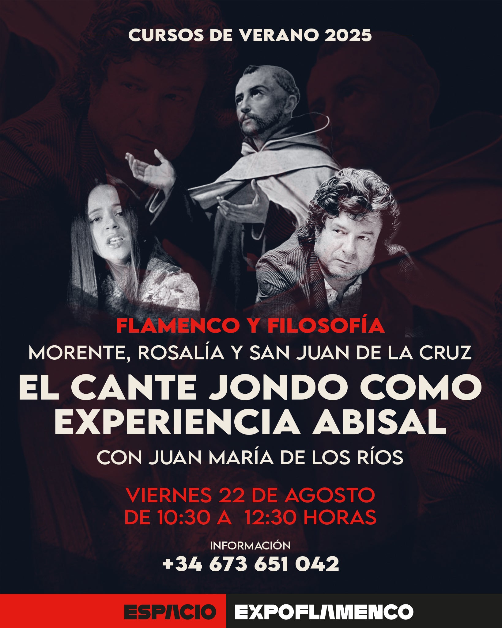 Este encuentro configurado como taller - conferencia busca profundizar en la relación entre flamenco y filosofía, en la razón poética del cante jondo. Lo que propongo, a partir del tango ‘Aunque es de noche’, interpretado por Morente y Rosalía e inspirado en un poema de san Juan de la Cruz, es una reflexión filosófica del cante jondo como experiencia abisal, expresión tomada del poeta José Ángel Valente.