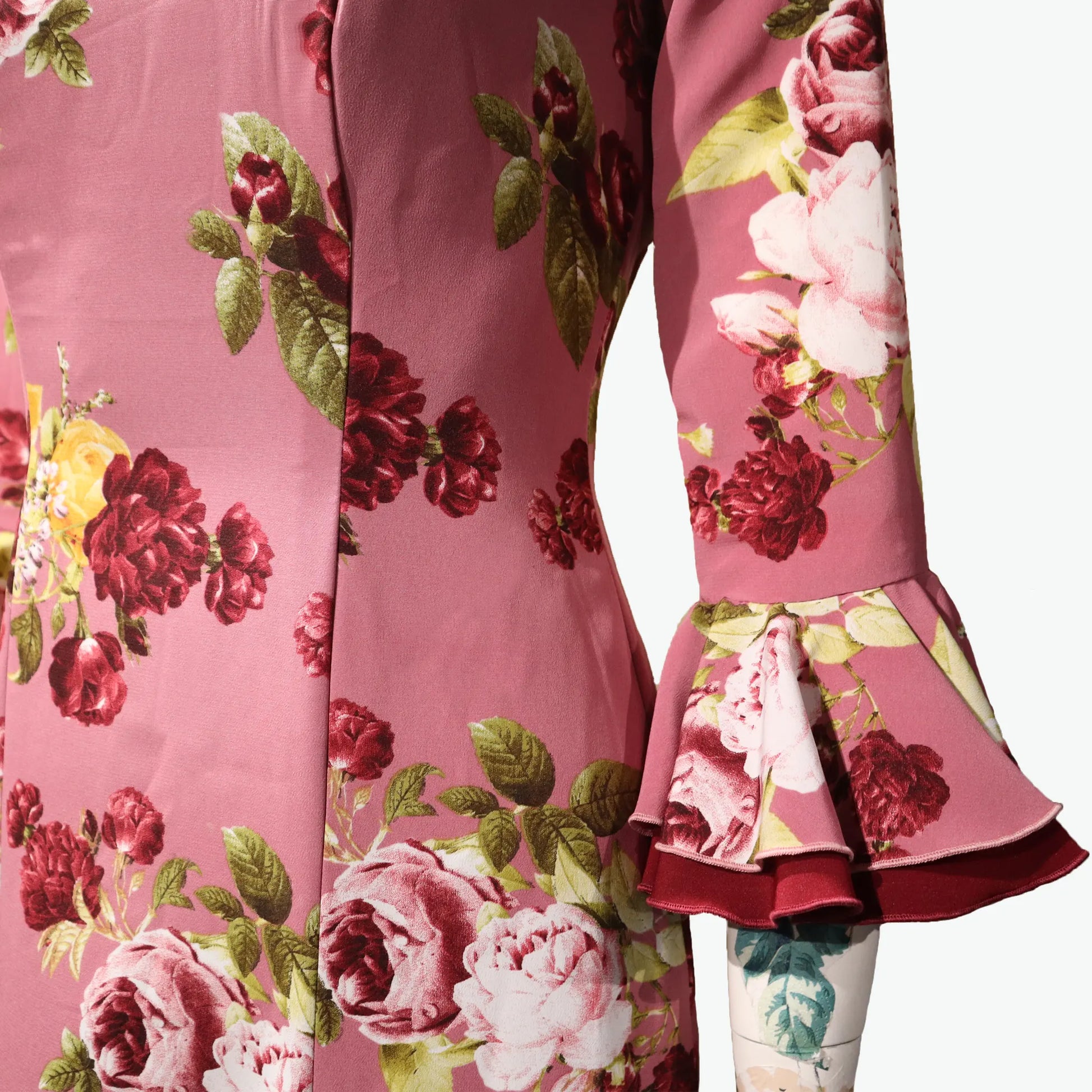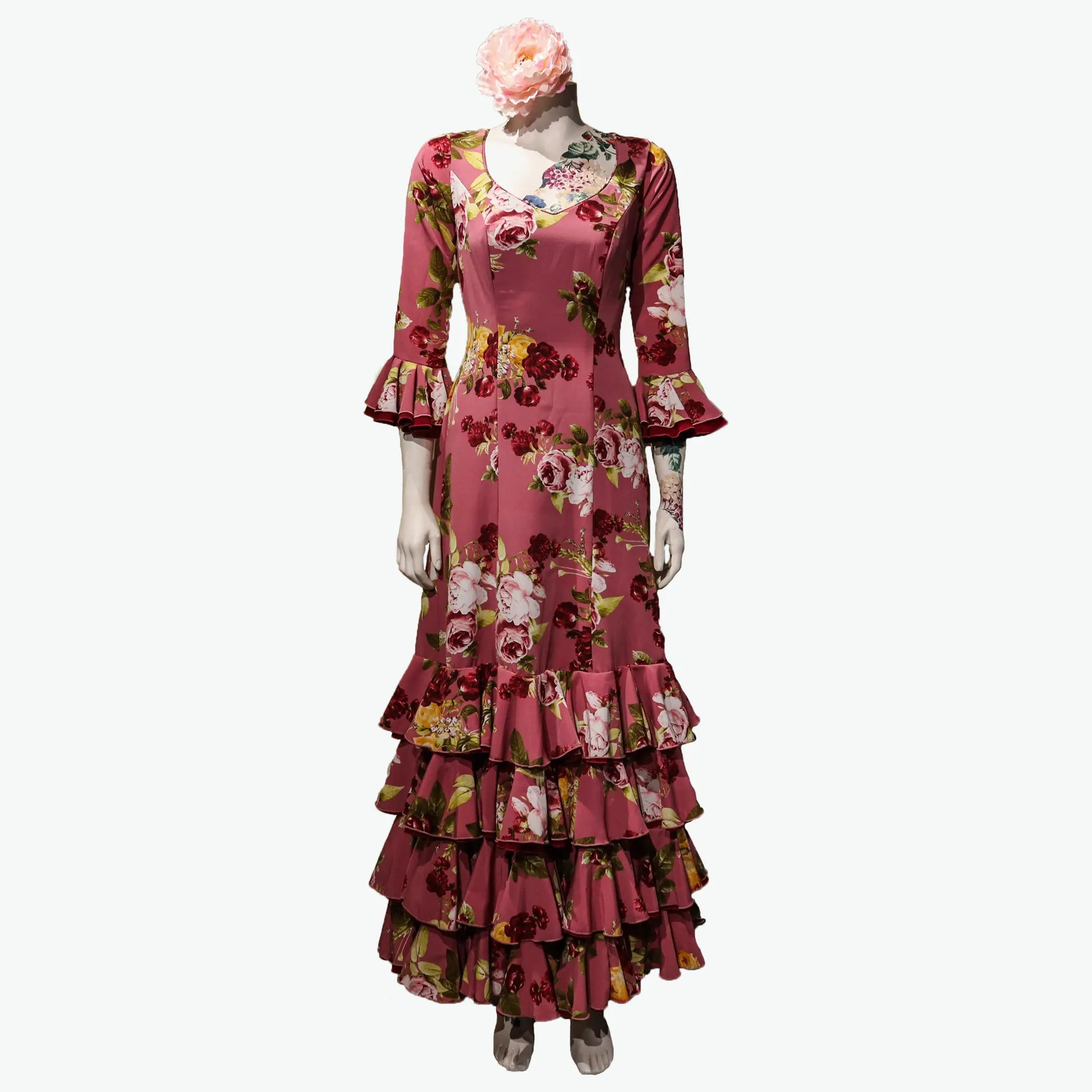 Vestido de escenario - Línea estampado flores en fondo maquillaje